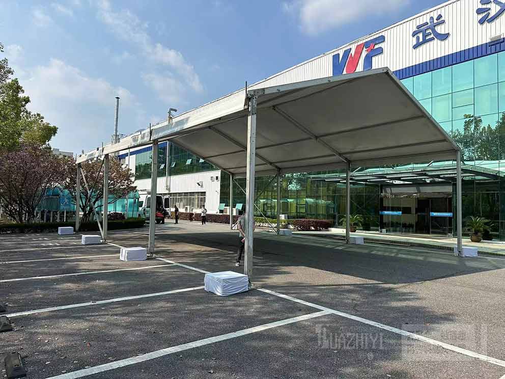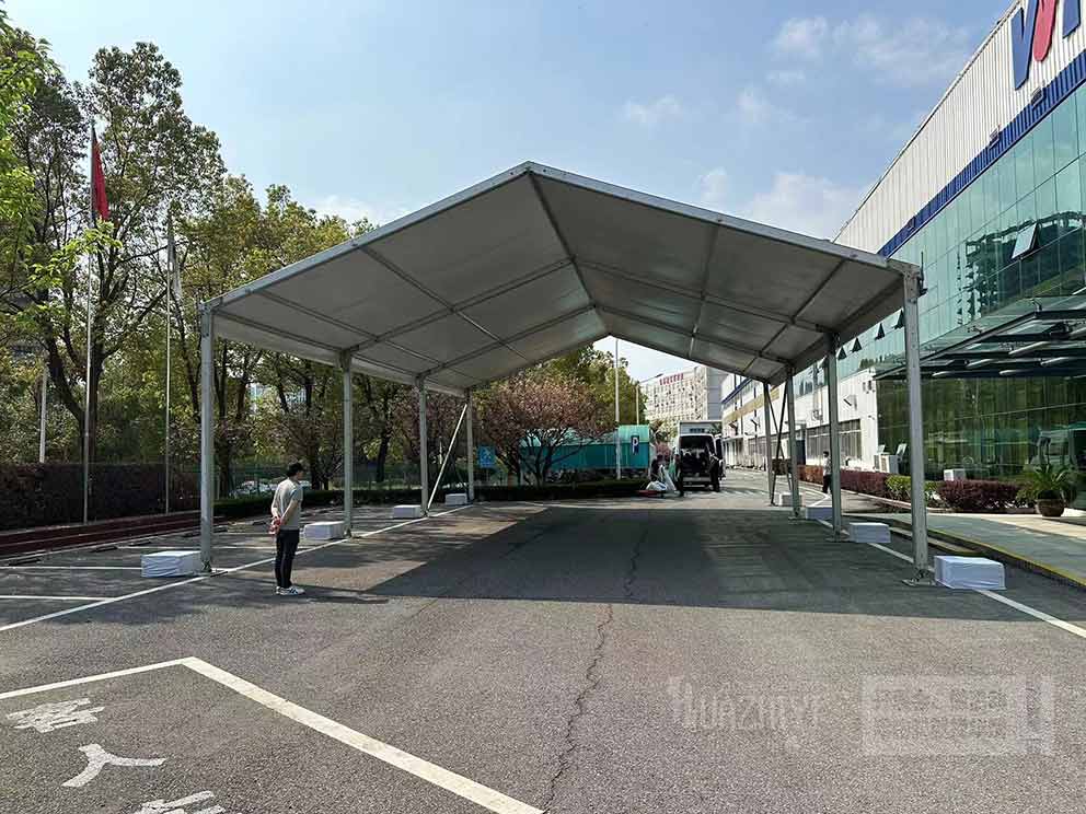 華熠廠家?guī)呓唤觾x式篷房出租現場