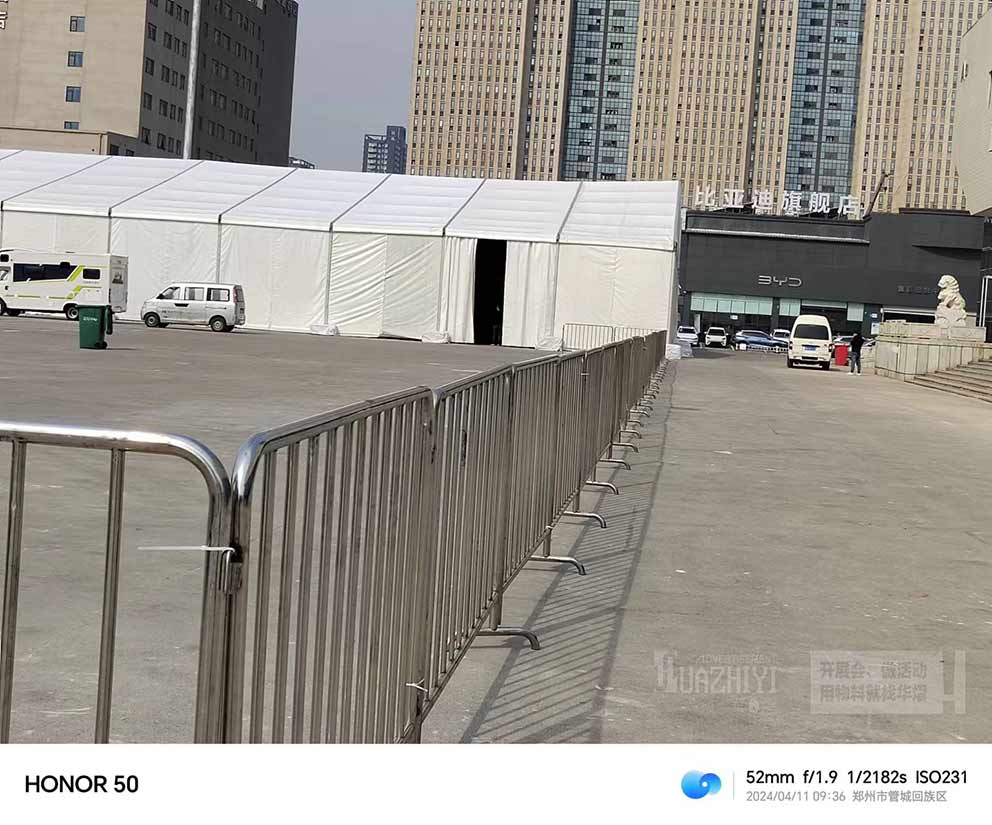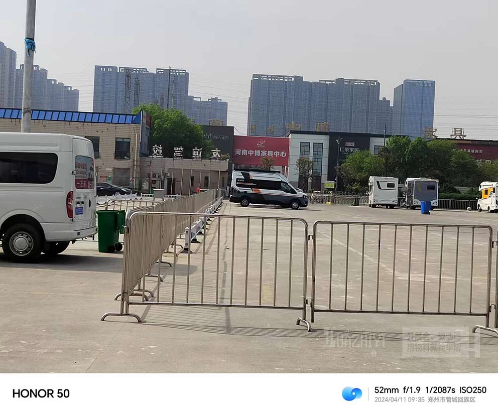 中原博覽中心百米鐵馬護欄租賃現(xiàn)場
