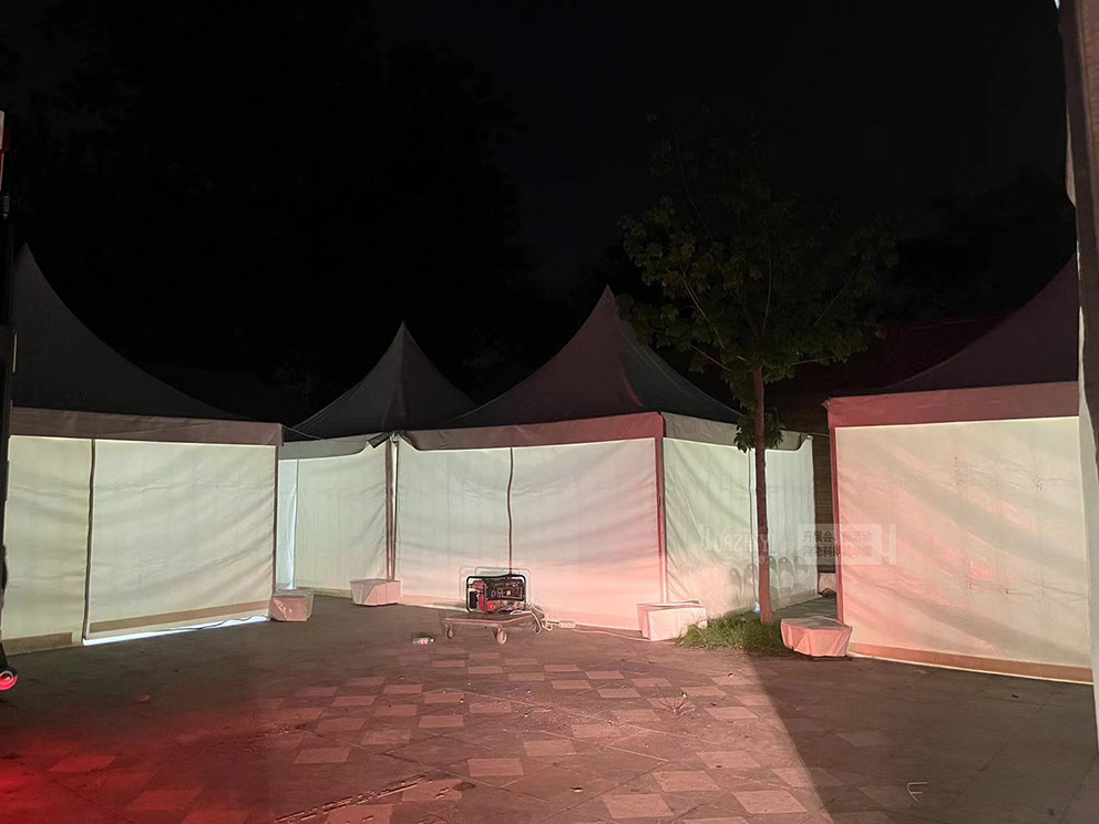 燈光下,開封篷房租賃內(nèi)熱鬧非凡,歡聲笑語此起彼伏,無論是高端宴會(huì)、文藝演出,還是主題派對,都在這片獨(dú)特的空間里找到了完美的呈現(xiàn)方式。而篷房外部,精心布置的燈光秀更是將夜晚裝點(diǎn)得如夢似幻,吸引著過往行人的目光,成為開封夜色中一道亮麗的風(fēng)景線。