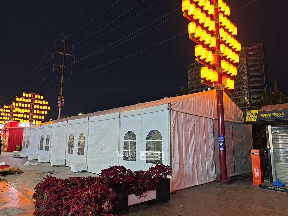 鄭州篷房租賃助力洛陽商品展銷會活動。在洛陽繁華的中街,市民和游客都會來這里逛逛,品嘗美食,觀賞夜晚的燈光,看古都的繁華。有一場臨時特賣會就選在了中街舉行,但是夜晚的氣溫還是比較冷的,所以鄭州華熠公司的篷房搭建團(tuán)隊就來到這里,開始了一場的忙碌施工。