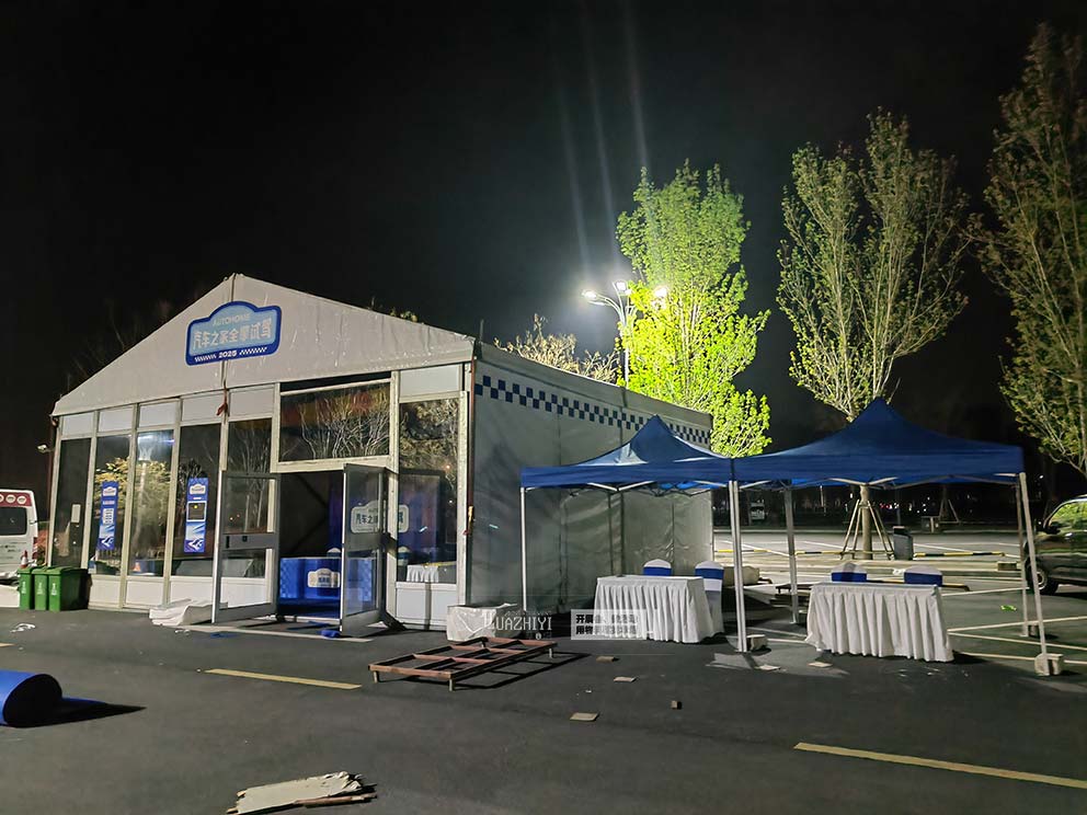 鄭州篷房租賃公司搭建試駕會系列篷房。在鄭州的只有河南汽車之家試駕會的準(zhǔn)備工作上,可以看到已經(jīng)根據(jù)不同場地功能分區(qū)搭建了不同的布置和準(zhǔn)備。主會場我們就可以看見一座篷房已經(jīng)搭建完畢,兩旁另有簡易帳篷,工作人員用來就坐進(jìn)行簽到。