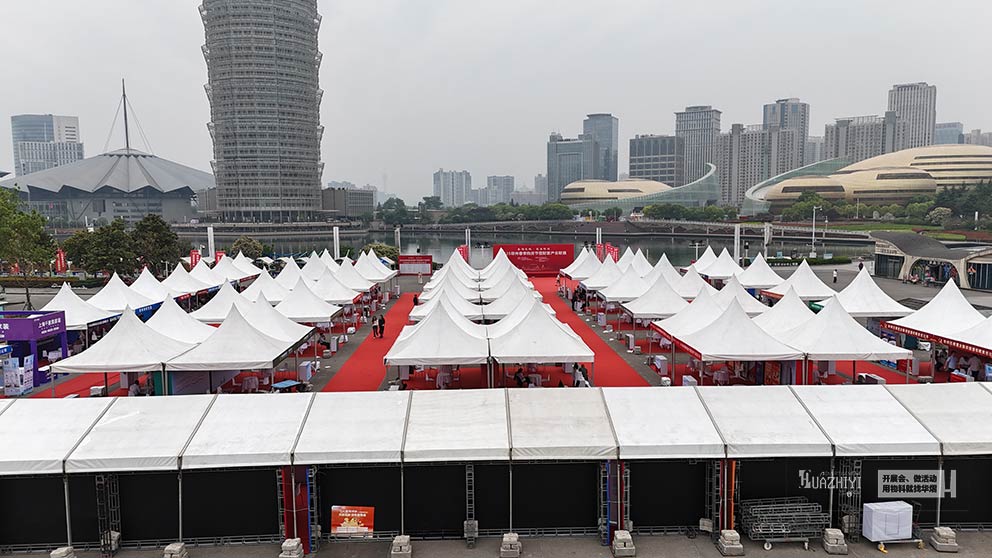 在活動的舉辦場地內,鄭州篷房租賃公司根據活動需求,精心設計了多款篷房方案,包括人字形篷房、尖頂篷房等,既滿足了展銷會的實用性需求,又增添了活動的觀賞性。