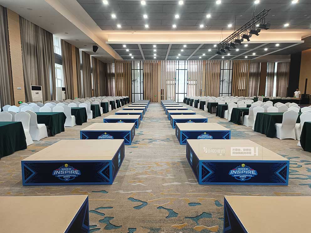 走進(jìn)場(chǎng)地,首先映入眼簾的是一塊塊搭建整齊的地臺(tái)。這些地臺(tái)選用堅(jiān)固耐用的材料,經(jīng)過精心打磨與安裝,表面平整且穩(wěn)固。地臺(tái)為機(jī)器人的操作提供了穩(wěn)定的平臺(tái),有效避免因地面不平整影響機(jī)器人的運(yùn)行軌跡。長(zhǎng)條桌沿著場(chǎng)地周邊及特定功能區(qū)有序擺放。鄭州桌椅租賃公司選用的長(zhǎng)條桌長(zhǎng)度適宜,桌面寬敞,足以放置各類設(shè)備、資料以及選手們的工具。