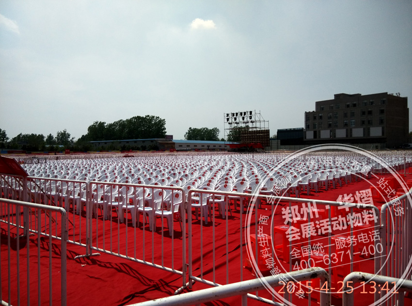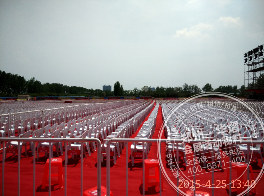 2015年4月25日葉縣億聯(lián)建材家居五金城愛心晚會,華熠為其提供近萬把沙灘椅,數(shù)百把貴賓椅,一千多米鐵馬護(hù)欄。華熠專業(yè)為各類大中型活動提供物料租賃服務(wù),歡迎廣大客戶前來考察。