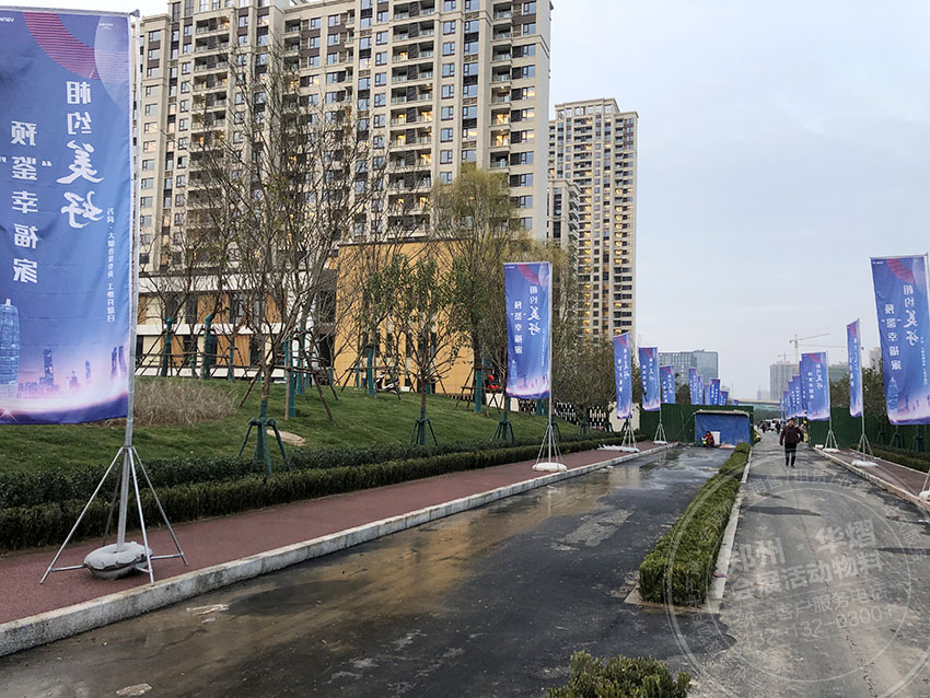 注水旗、水壺旗、道旗、廣告刀旗、迎風(fēng)旗等。此次鄭州萬科大都會活動便使用了華熠物料租賃供應(yīng)商