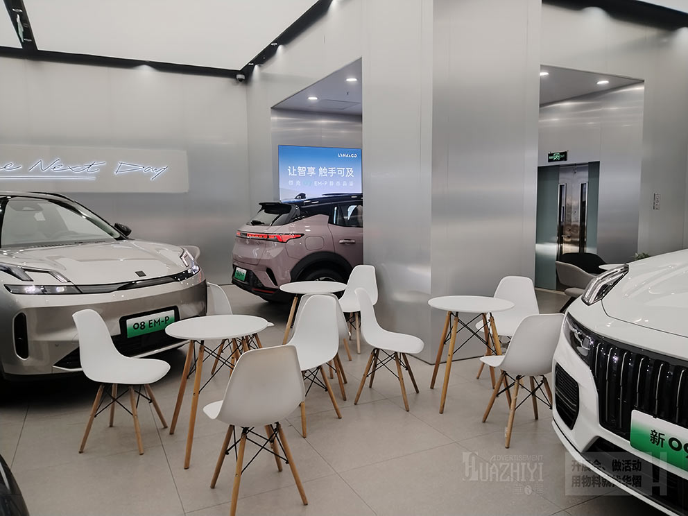 鄭州桌椅出租廠家布置汽車(chē)門(mén)店活動(dòng)桌椅現(xiàn)場(chǎng)