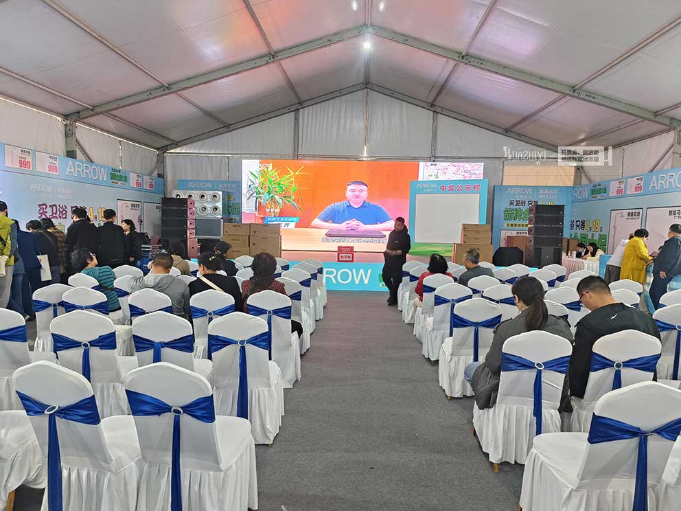 華熠篷房租賃公司憑借多年的行業(yè)經(jīng)驗(yàn)和豐富的搭建案例,為展銷會(huì)量身定制了一套完美的篷房搭建方案。我們提供的篷房不僅設(shè)計(jì)簡(jiǎn)潔大方,與箭牌衛(wèi)浴的品牌形象相得益彰,還充分考慮到了實(shí)用性和安全性。篷房?jī)?nèi)布局合理,展品陳列井然有序,讓參觀者能夠輕松瀏覽并選購(gòu)心儀的衛(wèi)浴產(chǎn)品。