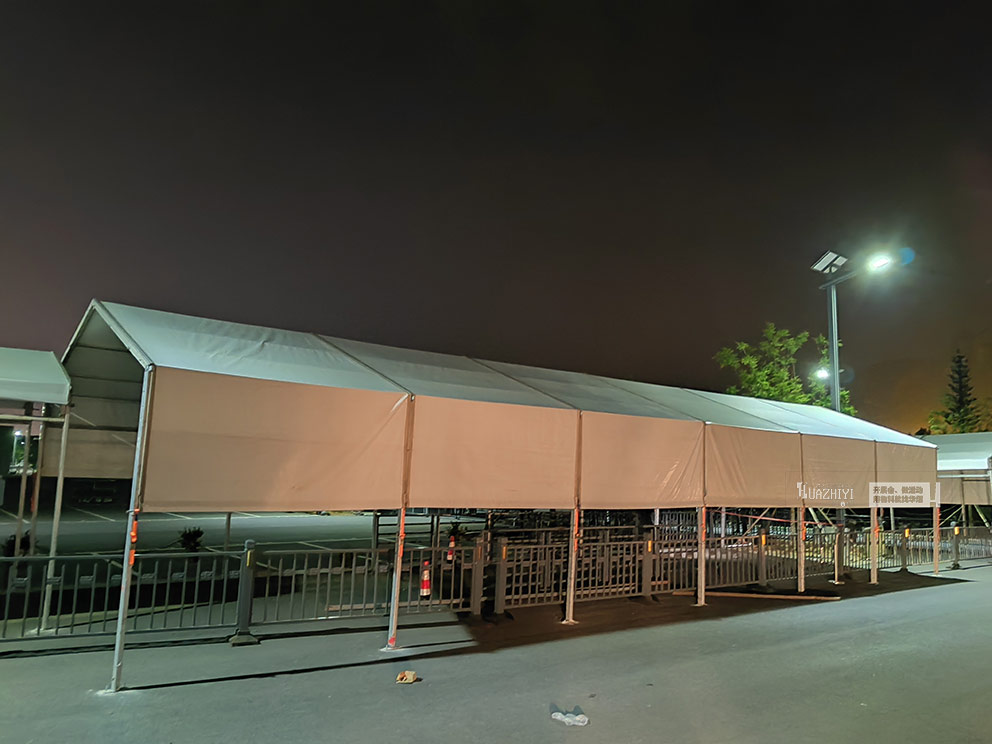鄭州篷房租賃公司搭建景區(qū)安檢通道大篷。鄭州華熠篷房租賃公司以專業(yè)的服務、精湛的技術和高品質的產品,為景區(qū)搭建的安檢通道大篷,不僅滿足了景區(qū)安檢工作的實際需求,更成為景區(qū)一道實用且美觀的風景線,助力景區(qū)在旅游高峰期實現(xiàn)高效運營與安全管理。